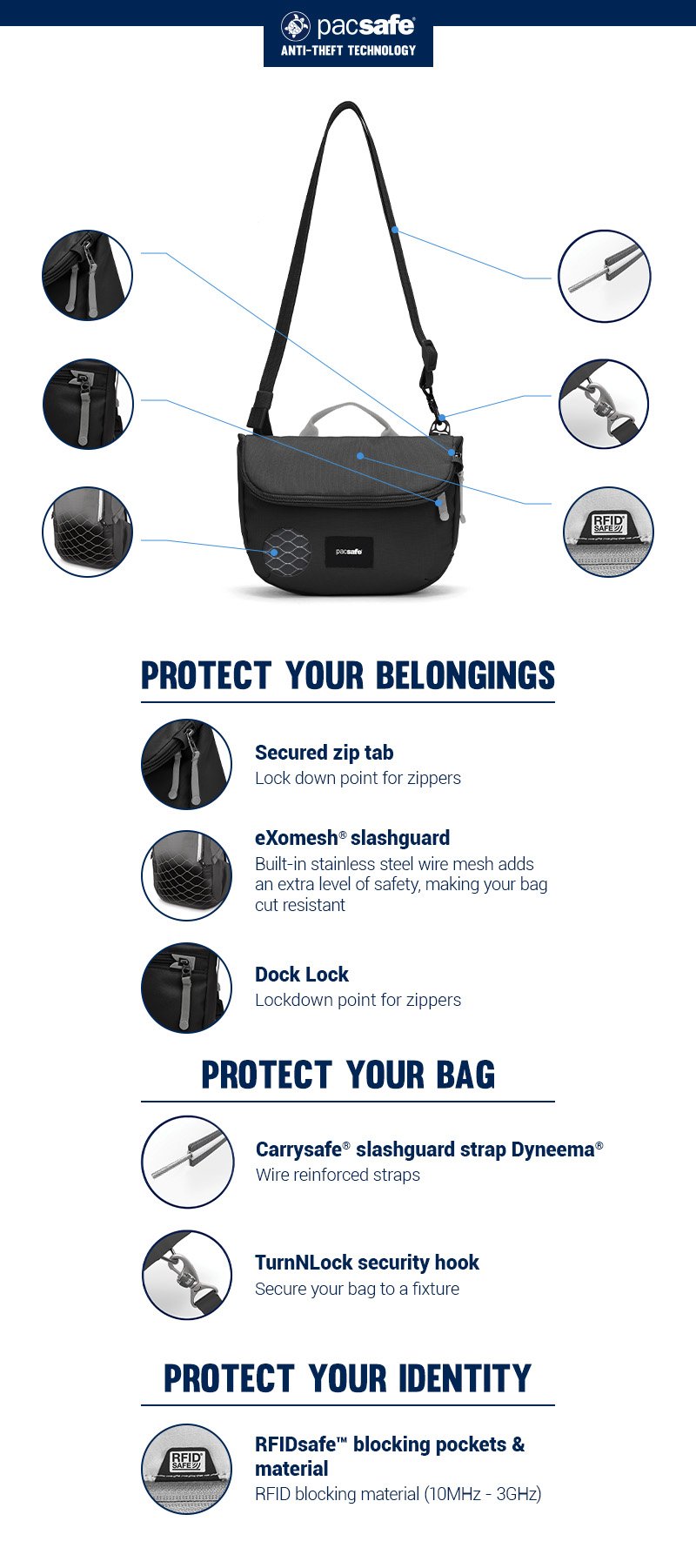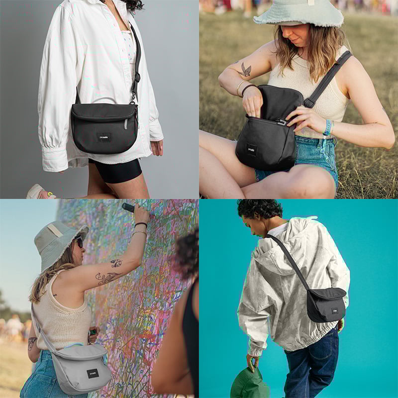 I purchased this for travel and it helped with feeling my passport and credit cards were safe. I also purchased the compact travel wallet and a lanyard. I took it on a trip to Alaska this summer and it was a great size to carry wallet, phone, water bottle and a snack while out for the day. The front zip pocket was perfect for my phone. I did keep trying to slide my phone in the back of the bag-a small zip pocket there would be great. With the increase in thefts/scammers I may use it or at least the wallet for everyday. Great product!