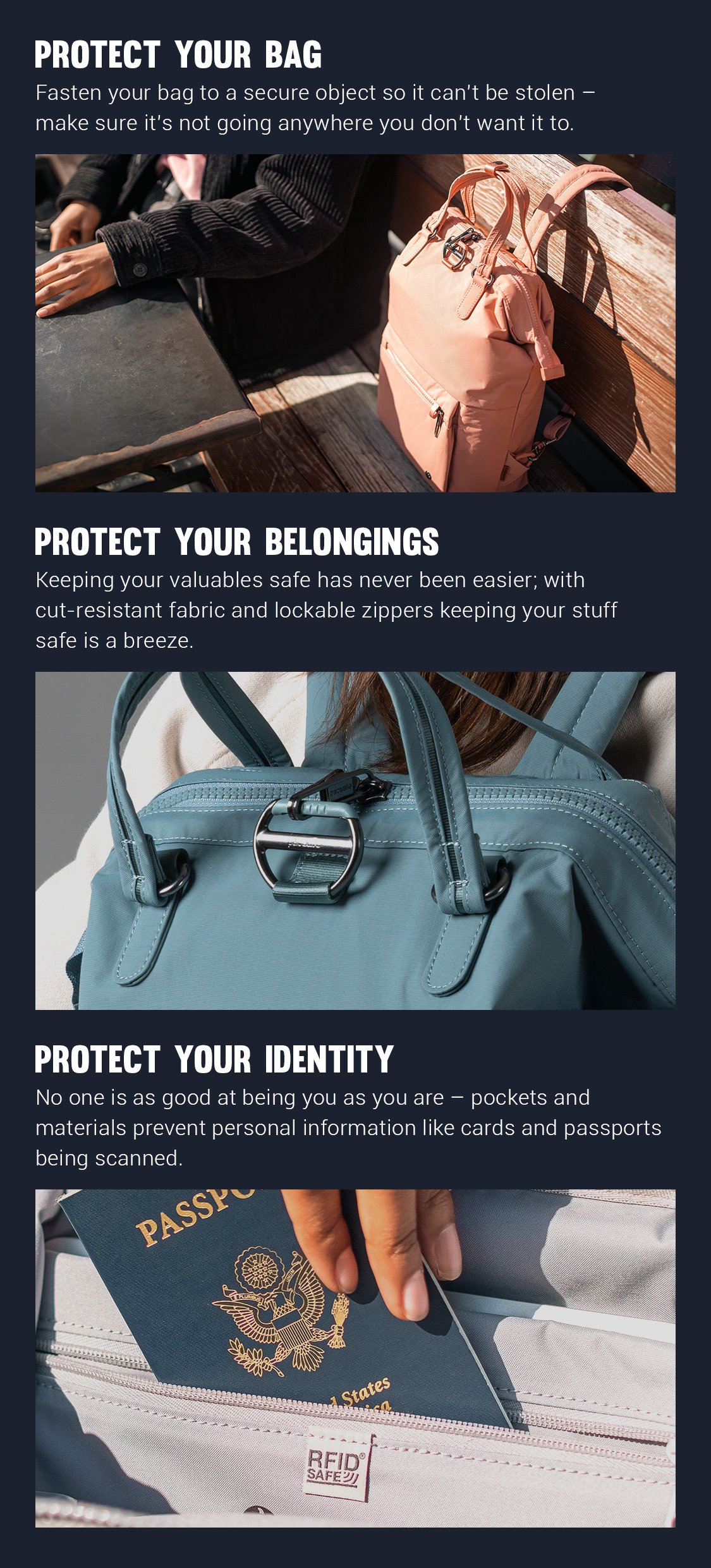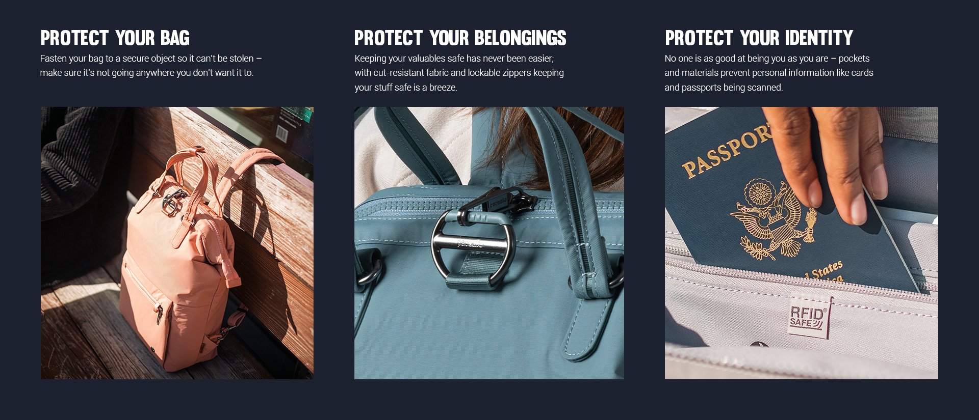 I have several Pacsafe bags . This one doesn't disappoint. Little pricey to be honest, but l don't mind paying, as the quality and safety features are still good.