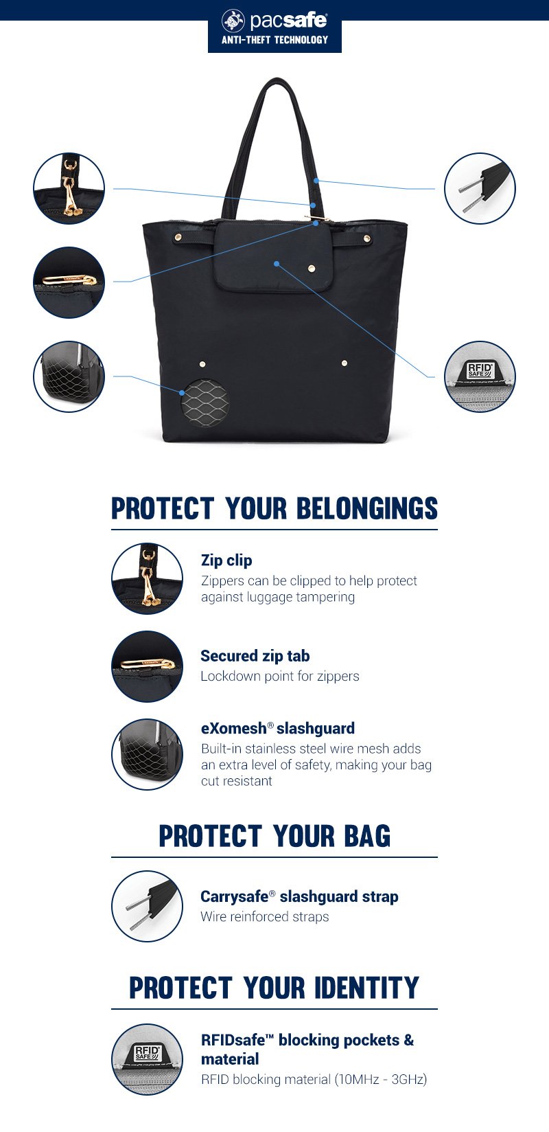 The image online was not clear. I expected the bag to be protected but discovered that it was only the small purse that had the protective wire mesh to prevent it from being slashed.