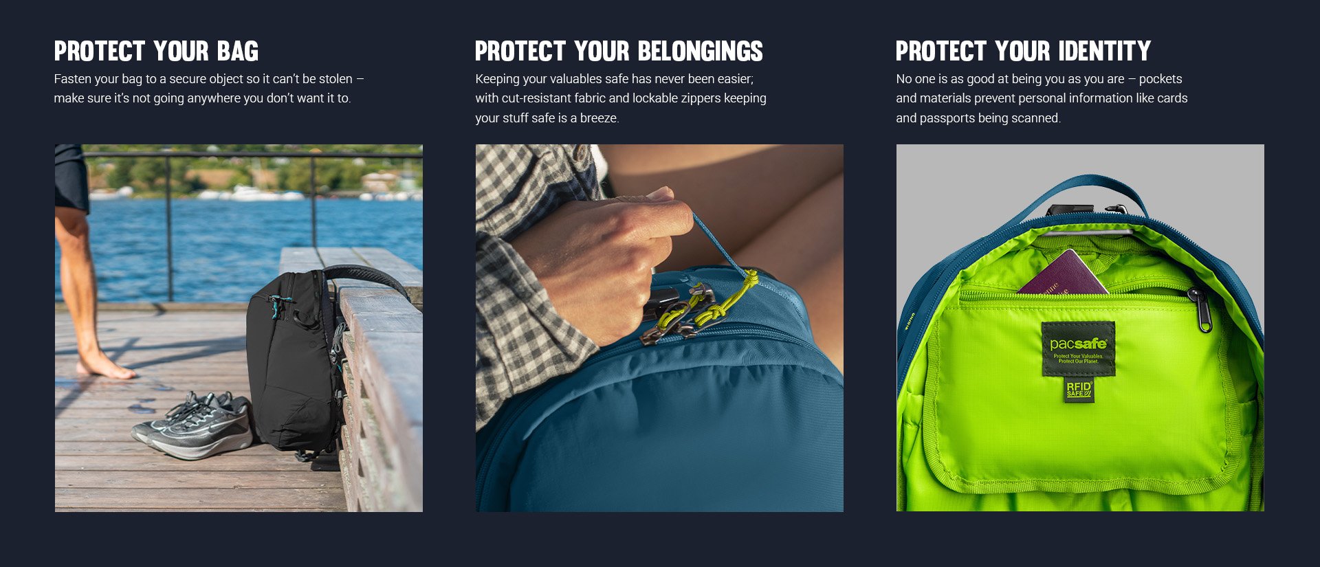 Zunächst: der Diebstahlschutz und die Verarbeitung sind herausragend. Leider mangelt es für mich an praktischen Details: Es gibt keinen Gurt, um den Rucksack am Griff eines Trolleys zu befestigen. Der kleine Tragegriff am oberen Ende reicht dafür nicht aus. Die Zipper-Bänder haben alle die gleiche Farbe, so dass man schon mal den falschen Reißverschluss öffnen kann. Der Platz im Inneren des Rucksacks wird durch Einschübe und Taschen vergeudet, die wohl selten passend sind. Besser wäre hier eine Rückseite zum ein- und aushängen, damit man flexibel ist. Und zum Schluss könnte das Pacsafe-Logo an der Außenseite ruhig prominenter sein. Taschendiebe meiden Pacsafe, aber sie könnten schon aus der Entfernung abgeschreckt werden. Das sind meine subjektiven Eindrücke und Kritik auf hohem Niveau. Die Zipper-Bänder habe ich ausgetauscht und noch ein Nachtlicht am Rucksack befestigt, da dieser keine Reflektoren hat. Der Nutzen durch den Diebstahlschutz und die hochwertige Verarbeitung lassen die angesprochenen Punkte nebensächlich erscheinen, aber zur vollen Punktzahl reicht es eben nicht.