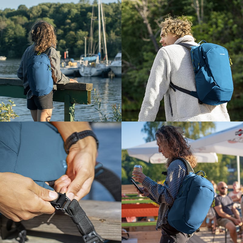 Die Pacsafe ECO-Kollektion ist unsere bisher nachhaltigste Kollektion, da sie zu fast 100 % aus recycelten Materialien und Komponenten besteht. Wenn du einen kompakten und dennoch geräumigen Rucksack für einen Tagesausflug oder eine Wanderung benötigst, ist dieser 18-Liter-Rucksack dein neuer Favorit. Das leichte Design bietet viel Platz mit mehreren Taschen und Fächern, um deine wichtigsten Dinge zu organisieren. Zu den weiteren Merkmalen gehört ein atmungsaktives Mesh-Paneel, das ergonomisch geformt ist, um den Rücken zu stützen und eine hervorragende Luftzirkulation gewährleistet, damit du trocken bleibst. Die ergonomisch geformten Schultergurte bieten besseren Halt und Tragekomfort. Zwei große Taschen für Wasserflaschen und ein Fach für eine Trinkblase sorgen dafür, dass du immer hydriert bist - oder nutze das Fach für deinen Laptop. Hergestellt aus rPET, das 10 recycelten Plastikflaschen entspricht, die für das Futter, das Netzgewebe, das Gurtband und die Etiketten verwendet wurden. Das Außenmaterial und einige Schnallen wurden aus regeneriertem ECONYL-Nylon hergestellt, das aus Meeresabfällen wie ausrangierten Fischernetzen, Stoffresten, Teppichen und Industriekunststoff gewonnen wird.