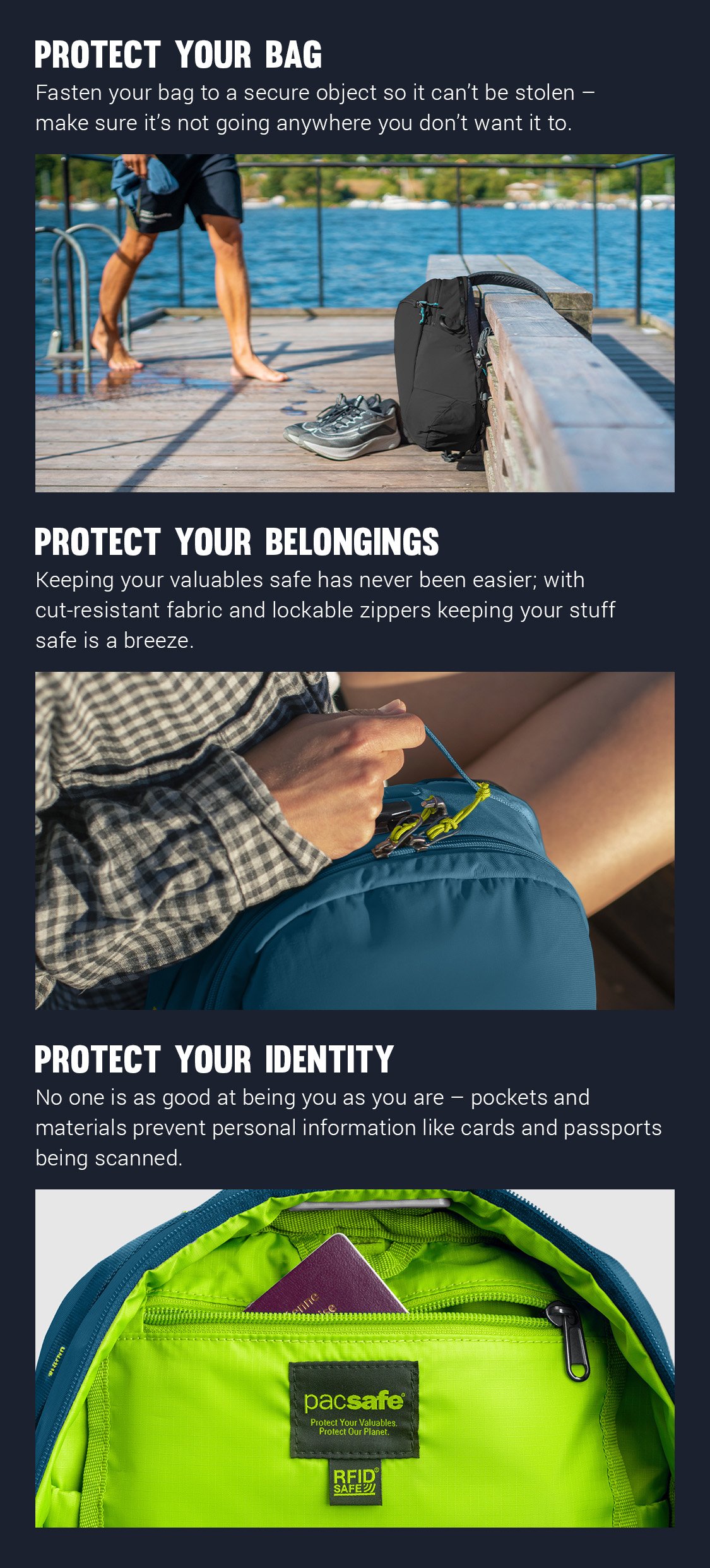 • Smarte Reißverschlusssicherung und schnittfestes Material um deine Wertsachen zu schützen