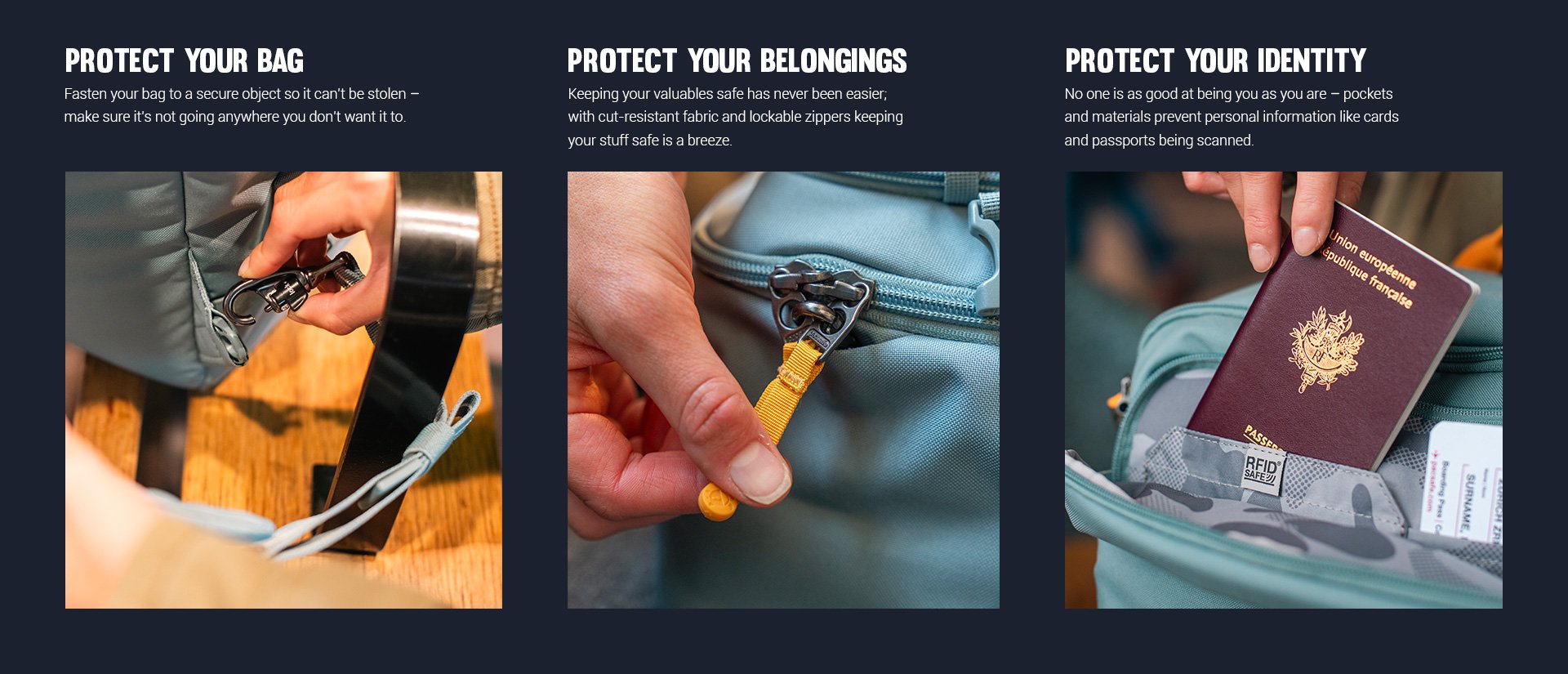 Wir stehen hinter der Qualität und Verarbeitung all unserer Produkte. Aus diesem Grund bieten wir eine Garantie von 5 Jahren auf Rucksäcke und Taschen und 2 Jahre auf Accessories und Zubehör.