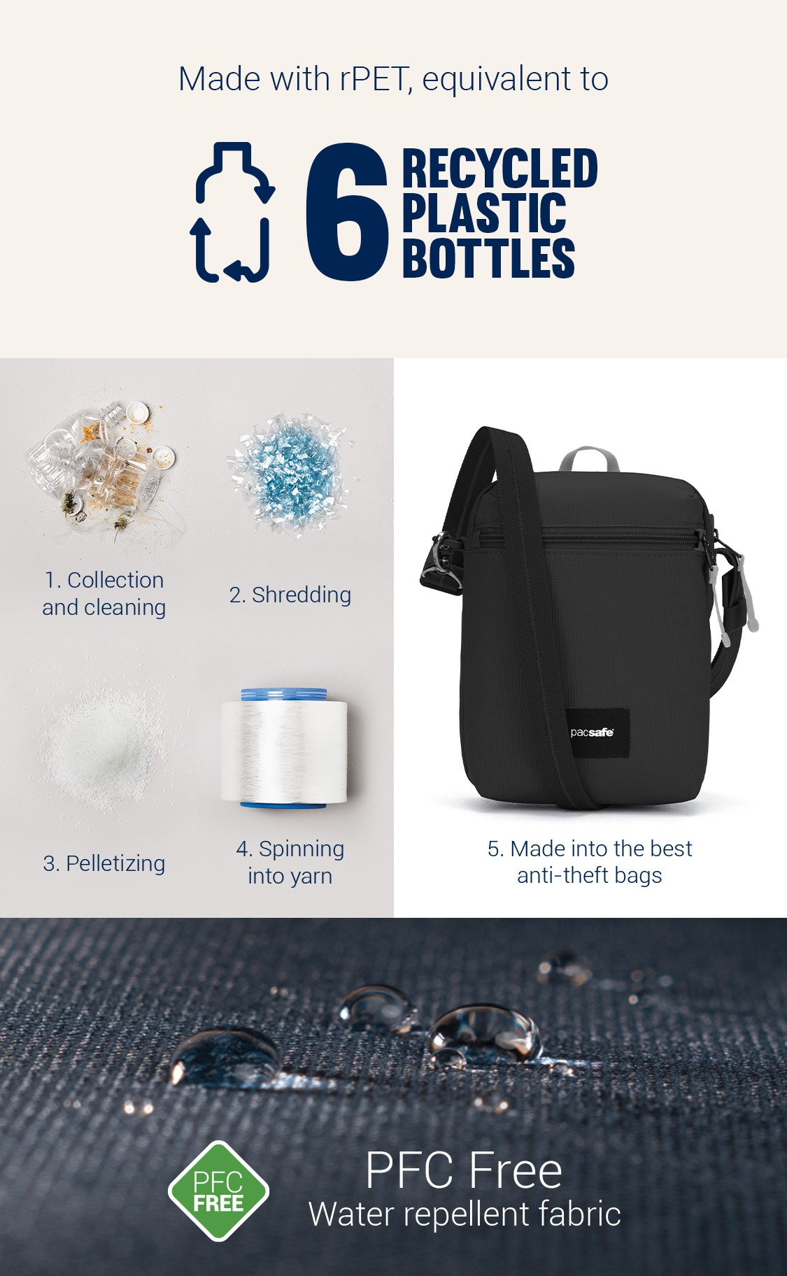 Dieses Produkt wird aus recyceltem Polyester (rPET) hergestellt, was 6 recycelten Plastikflaschen entspricht.