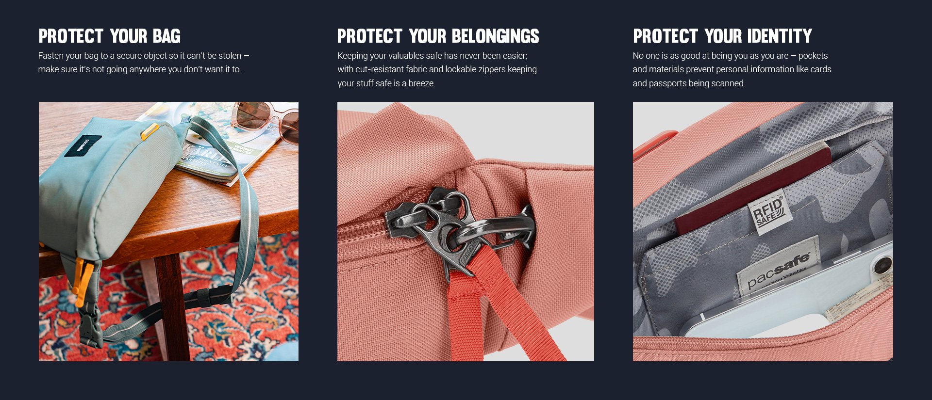 I love this bag, not only for its amazing security features, but it is so roomy. Another brilliant design from Pacsafe.