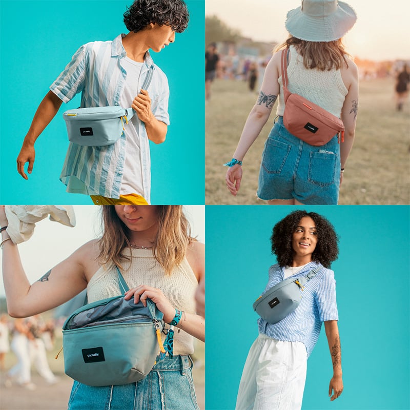 Having travelled around Denmark, Sweden and Canada with my first one, I started using it all the time. When this pink one came up in the sale I snapped it up, so I can mix and match. Love that I can use it as a sling across my back safe in the knowledge that no-one can easily open it. Also handy to use as a bumbag too.