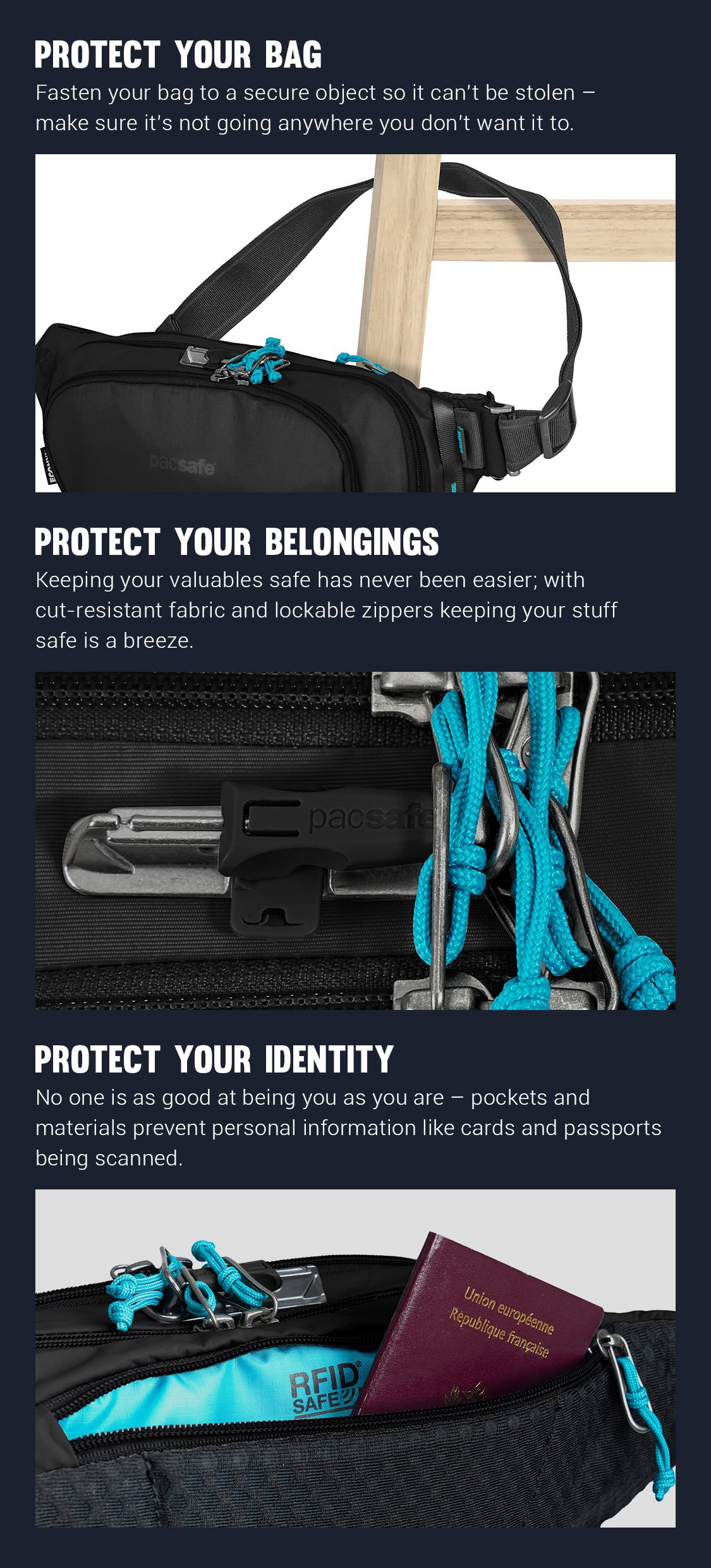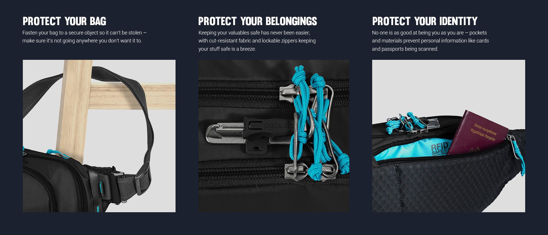 Fits essentials for a day tour thru city or - in combination with other bags/luggage- all items that must be at hand but safe. High quality and good functionality in most situations. Sometimes the lock for the zippers is hard to closed, zippers must be aligned very well.