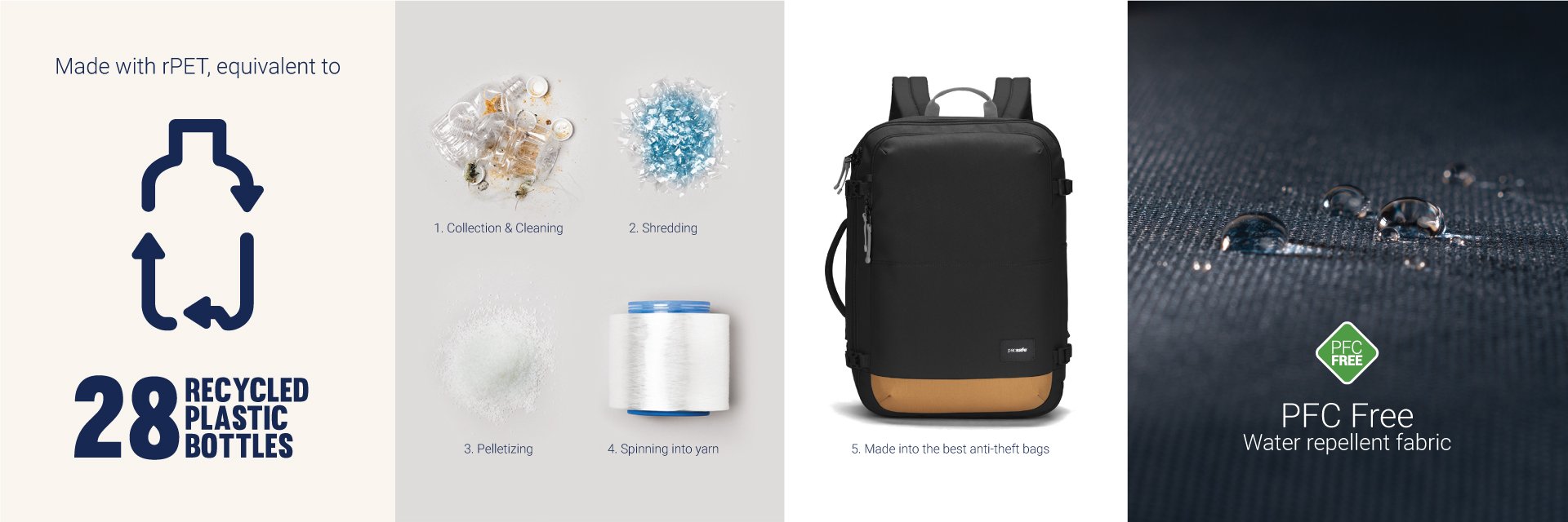 This bag is made with 600D recycled polyester, designed to be flexible yet durable. We’d also love to hear your thoughts on other aspects, such as the anti-theft features and overall functionality, as your input is valuable to us.
