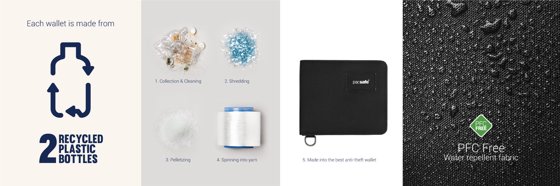 This product is made with post-consumer recycled polyester (rPET), equivalent to 2 recycled plastic bottles, and is treated with a 100% PFC-free water repellency.