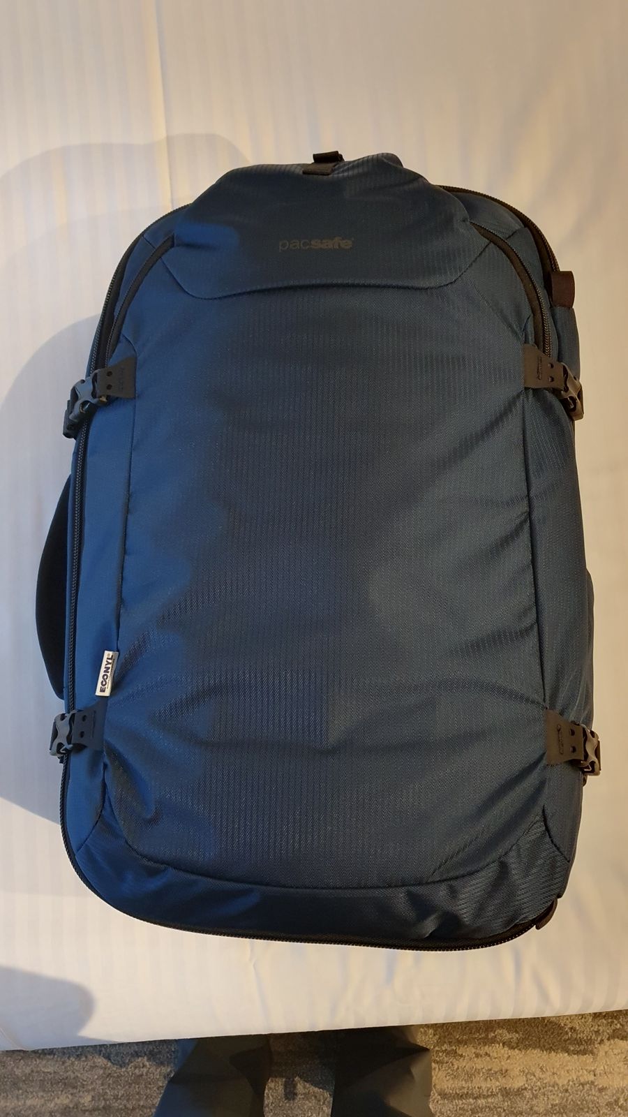 The security features are very reassuring. The other one we have, whilst efficient and capacious, doesn’t have locking zips etc, so the Pacsafe is streets ahead.