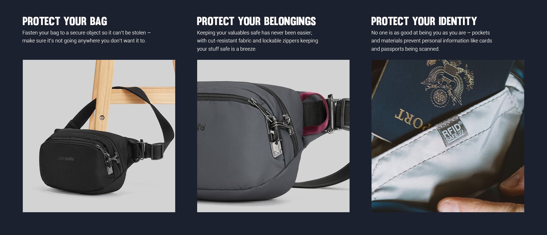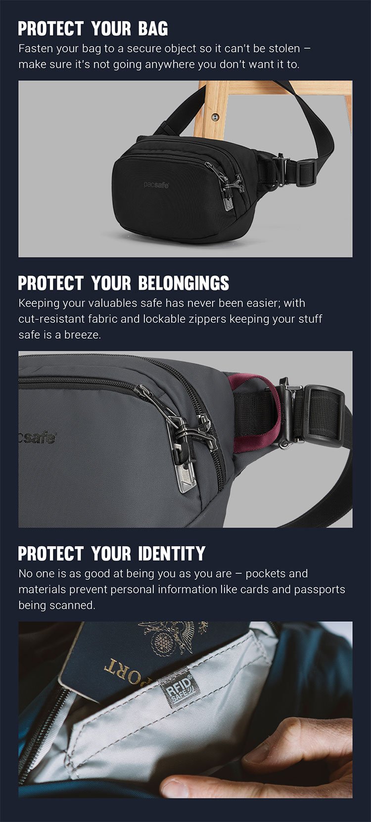 Thanks for your feedback. We've relayed this information to our product team to ensure there are more product selection for people who value fashion as well as safety. The GO Anti-Theft Sling Pack is probably the best product for your needs. Additionally, your passport can be put in our RFID pocket inside the bag to keep them safe.