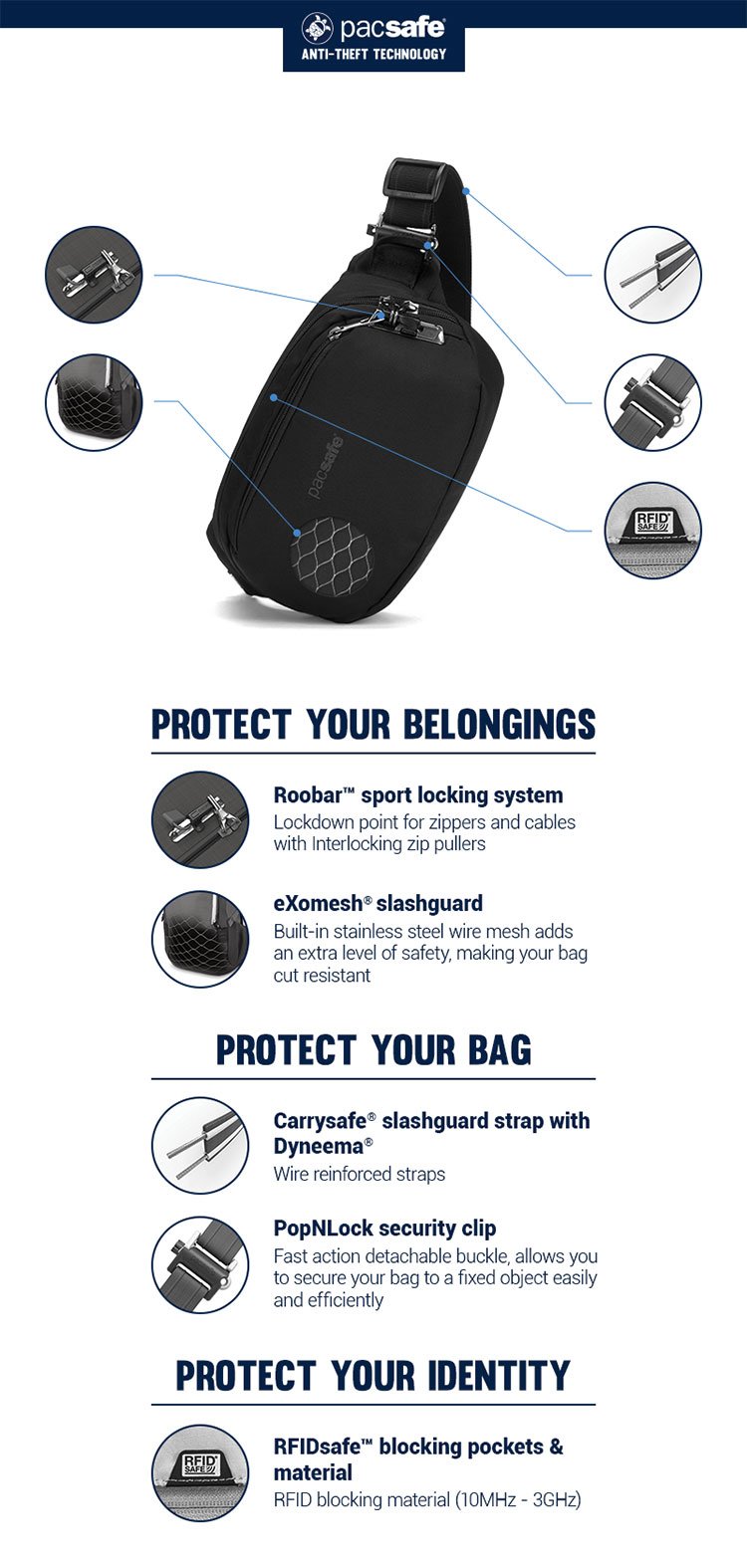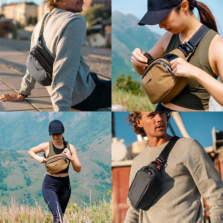 I have this bag and love everything about it except for the lack of colour options. I would love to see this released in a tan, caramel or rose colourway (including the straps) like the Pacsafe Go range. I'm a woman who likes to feel fashionable when I travel and the black strap is very overpowering for my flowy summer outfits. I prefer the colour options in the Pacsafe Go range but the bags don't have as many zip sections making them less useful in my opinion. I want a stylish coloured bag that has 2 zip compartments which can be worn as both a waist bag or cross carry / sling style.