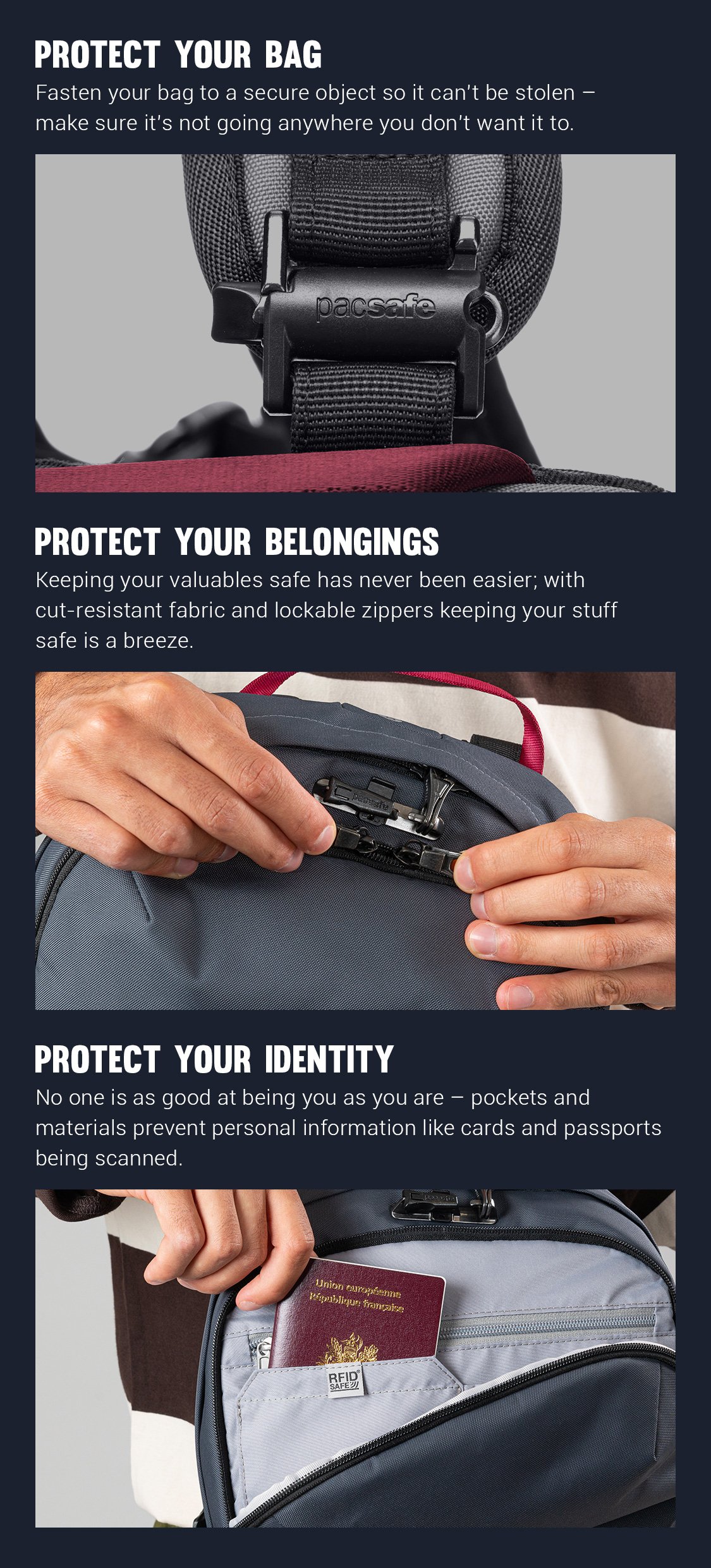 i'm disappointed in this product. I've owned other pac safe bags before and really love them.