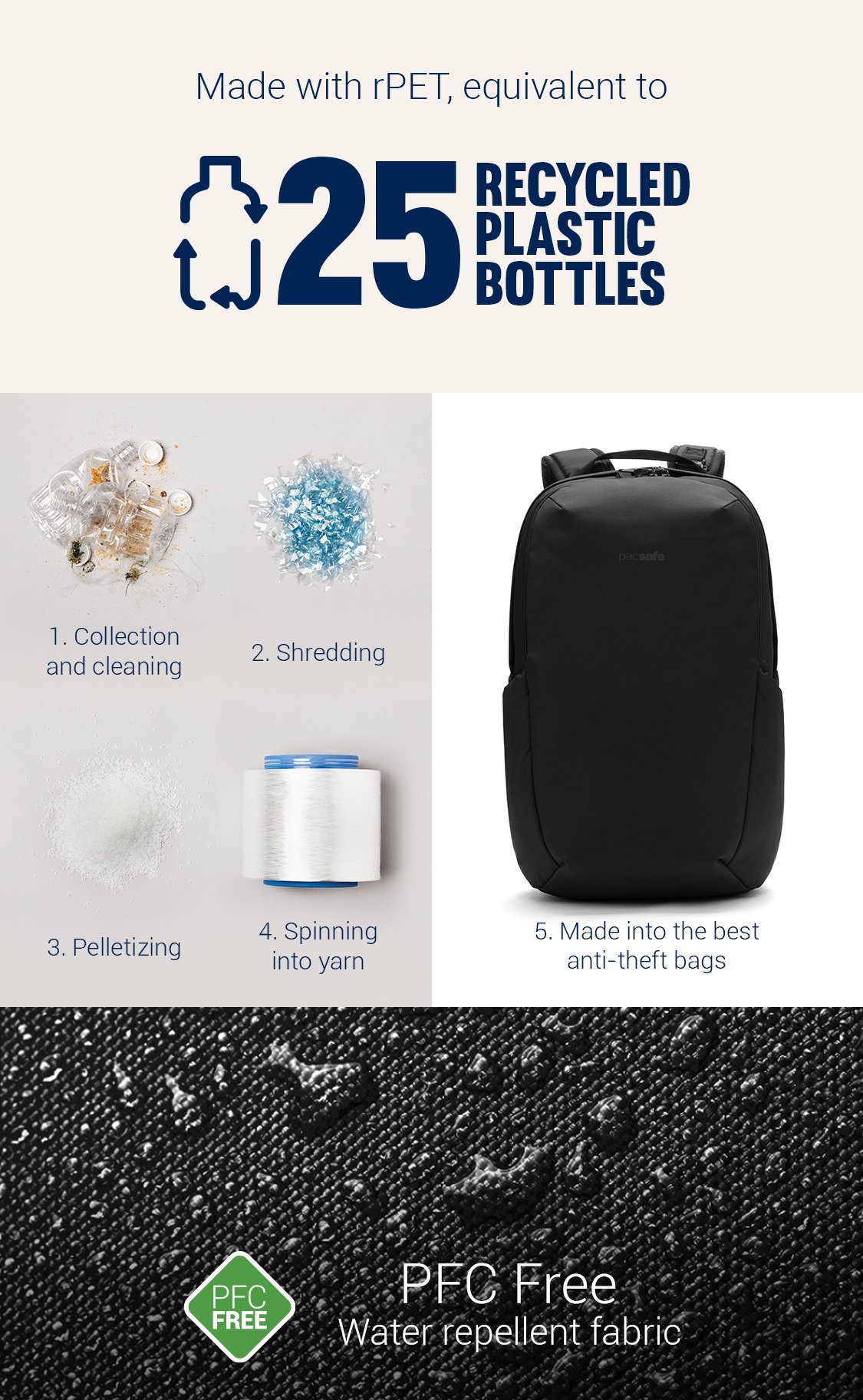 Check the sizingThis product is made with post-consumer recycled polyester (rPET), equivalent to 25 recycled plastic bottles, and is treated with a 100% PFC-free water repellency.